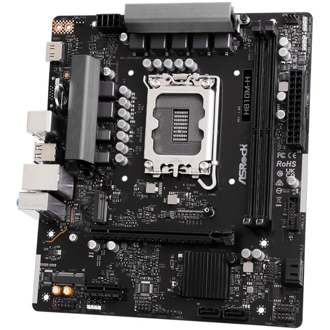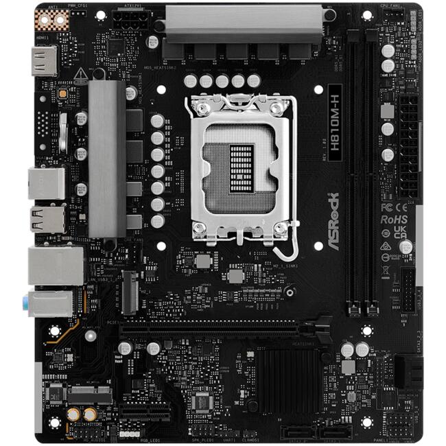 La ASRock H810M-H es una placa base Micro ATX diseñada para ofrecer estabilidad, rendimiento y conectividad moderna en sistemas de nueva generación con socket Intel LGA1700. Compatible con procesadores Intel de 12ª, 13ª y 14ª generación, esta placa equilibra potencia y eficiencia, siendo ideal para equipos domésticos, de oficina o gaming de gama media que buscan fiabilidad con las últimas tecnologías.