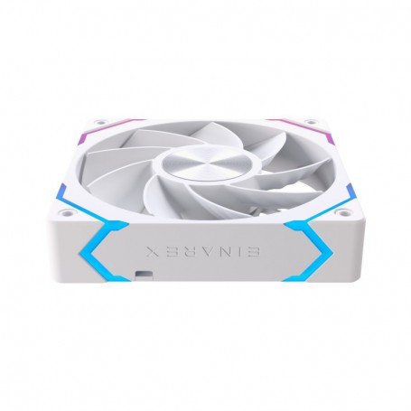 El ventilador de caja adicional Einarex EX12Ci PWM A-RGB White de 120 mm está diseñado para configuraciones donde la estética es tan importante como el flujo de aire, especialmente en montajes laterales o inferiores, gracias a su diseño de aspas invertidas (inverted blade) que permite mantener el frontal visible sin alterar la dirección del caudal. Incorpora control PWM de 4 pines para regular automáticamente las revoluciones según la temperatura y iluminación A-RGB de 5V-3Pin sincronizable con placas base compatibles, ofreciendo un equilibrio sólido entre rendimiento, bajo ruido y una integración visual limpia en equipos de color blanco.