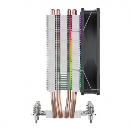 El UNYCOOL H40 es un refrigerador de aire para procesadores, diseñado para ofrecer un enfriamiento eficiente y silencioso en múltiples plataformas gracias a su compatibilidad multizócalo (LGA 1150/1151/1155/1156/1200/1366/1700/775, AM2/AM3/AM4/AM5, FM1 y otros). Cuenta con un ventilador de 120 x 120 x 25 mm con 7 aspas, que alcanza hasta 2000 RPM y un flujo máximo de 75,89 CFM, manteniendo el ruido por debajo de 31,6 dB. Su disipador combina cobre y aluminio, con 4 tubos de calor y una potencia de diseño térmico (TDP) de 160 W, asegurando una refrigeración efectiva para CPUs de alto rendimiento.