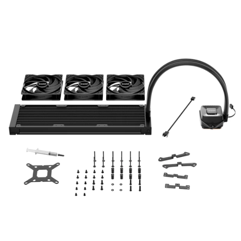 | Características | - Compatibilidad Intel: 1851, 1700, 1200, 1151, 1150, 1155 - Compatibilidad AMD: AM5, AM4 - Nivel de ruido: 17,6 / 29,3 / 37,2 dB(A) a 50 / 75 / 100 % - Numero de ventiladores: 3 - Longitud de tubo: 400 mm - Puerto de relleno - Velocidad de bomba: hasta 5.500 rpm - Bomba ajustable: 3.000 a 5.500 rpm - Conector de bomba: 4 pines PWM - Radiador: aluminio con base de cobre - Ventiladores: Pure Wings 3 120 mm PWM high-speed - Velocidad maxima del ventilador: 2.100 rpm - Flujo de aire maximo: 59,6 CFM - Presion de aire maxima: 2,41 mm H2O Dimensiones y peso - Radiador con ventiladores: 397 x 120 x 52 mm - Bloque de refrigeracion: 68,5 x 93,4 x 44,9 mm - 1,25 kg Contenido - Pasta termica incluida - Kit de montaje Intel y AMD - Cable de extension PWM de 4 pines - Manual de usuario multilenguaje |