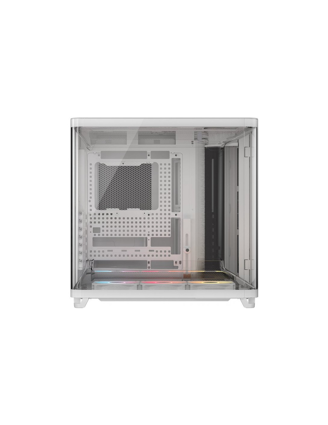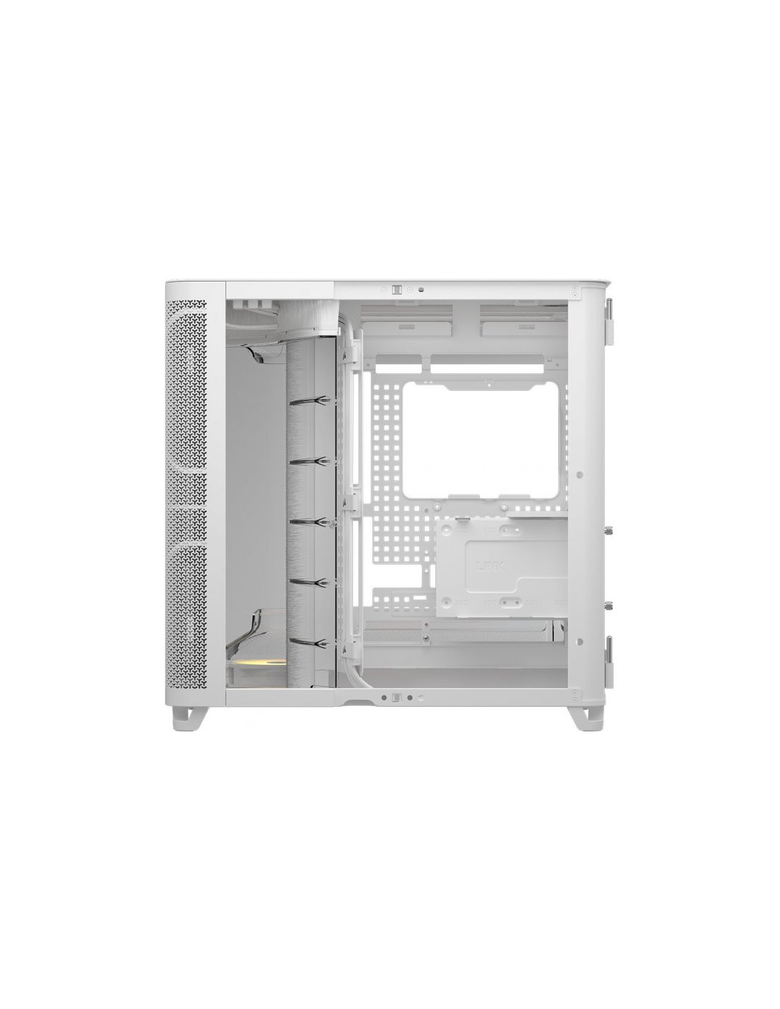 La Corsair Air 5400 RS-R ARGB en color blanco es una caja ATX semitorre diseñada para configuraciones gaming de alto rendimiento que combina una estética limpia y moderna con paneles de cristal templado y un sistema de ventilación optimizado. Su estructura robusta, junto con la iluminación ARGB y la amplia compatibilidad con refrigeración líquida, la convierten en una opción ideal para usuarios que buscan potencia, organización interna y un montaje visualmente atractivo.