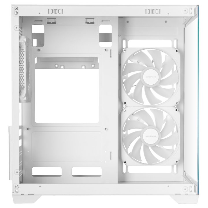 La Mars Gaming MC-VIEW3 (blanca) es una caja Micro-ATX de formato compacto que destaca por su espectacular diseño panorámico con cristal templado continuo, iluminación ARGB y un sistema de refrigeración optimizado. Pensada para configuraciones gaming exigentes, combina estética y rendimiento gracias a su estructura de doble cámara, permitiendo un montaje limpio, una excelente gestión del flujo de aire y una presentación visual impactante del hardware.