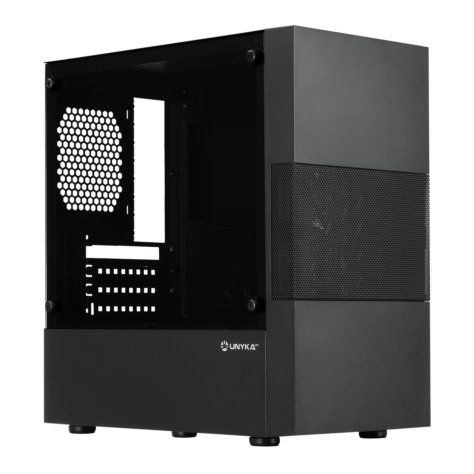 La UNYKA Aero C25 es una caja Micro-ATX tipo semitorre que combina un diseño compacto con un rendimiento sólido, ideal para entornos domésticos, educativos y profesionales. Incluye fuente de alimentación ATX de 500W, lo que permite iniciar tu sistema de inmediato, con una ubicación inferior estratégica que mejora la gestión de cables y flujo de aire.
