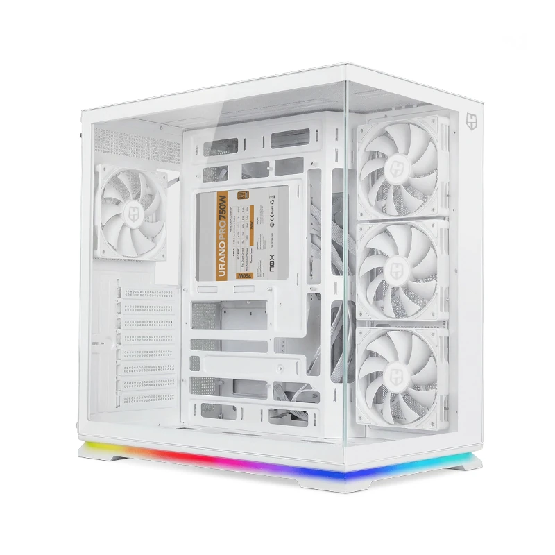 | Otras características | - Fuente de alimentación compatible: ATX (no incluida) - Longitud máxima GPU: 420 mm - Altura máxima disipador CPU: 165 mm - Longitud máxima PSU: 190 mm - Espacio gestión de cableado: 96 mm Material - Chasis de acero SPCC 0,7 mm - Frontal de cristal templado - Lateral de cristal templado Expansion - 8 x ranuras de expansión Diseño - Compatible con placas base ATX / Micro-ATX / ITX - Frontal y lateral de cristal templado frameless - Tira LED ARGB en la parte inferior - Filtro antipolvo magnético superior - Espacio para hasta 10 ventiladores Puertos - 1 x USB 3.0 - 1 x USB 2.0 - 1 x USB Tipo C - 1 x HD Audio - 1 x Mic Sistema Ventilación - Ventiladores incluidos en placa base: 3 x 120 mm PWM - Ventilador incluido trasero: 1 x 120 mm PWM - Soporte superior: 3 x 120 mm / 2 x 140 mm - Soporte zona PSU: 3 x 120 mm - Soporte refrigeración líquida superior: 120 mm / 240 mm / 280 mm / 360 mm - Soporte refrigeración líquida trasera: 120 mm - Soporte refrigeración líquida en placa base: 120 mm / 240 mm / 360 mm Dimensiones y peso - 280 x 445 x 442 mm - 5,7 kg |
