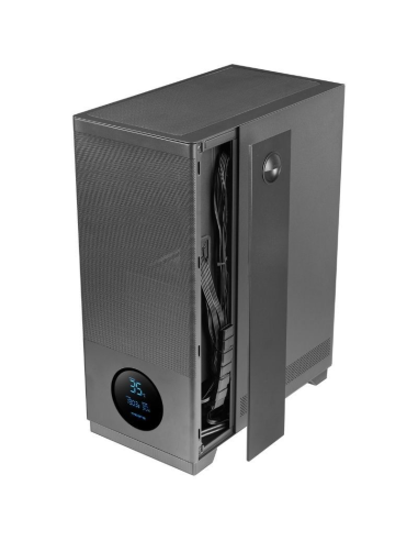 Pantalla LED frontal circular que muestra las temperaturas de CPU, GPU y las revoluciones del ventilador en tiempo real.