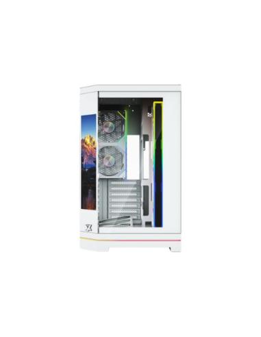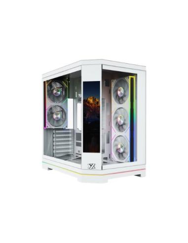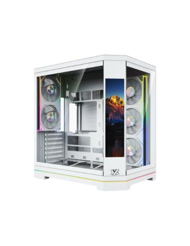 La XYZ NEUTRON X PRO White es una caja ATX de alto rendimiento orientada a configuraciones gaming y profesionales que combina un elegante diseño panorámico en color blanco con una estructura de doble cámara, ofreciendo una gestión interna optimizada y una estética limpia; incorpora una pantalla inteligente de 9,1 pulgadas que permite monitorizar el sistema o mostrar contenido personalizado, junto a un sistema de refrigeración avanzado con ventiladores ARGB y compatibilidad con placas base BTF, lo que facilita un montaje ordenado y sin cables visibles.