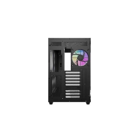 La darkFlash DQX80 Black es una torre ATX panorámica de diseño premium que combina elegancia, espacio y un excelente rendimiento térmico. Construida con materiales de alta calidad como aluminio y cristal templado, presenta tres paneles transparentes que ofrecen una vista completa del hardware, ideal para exhibir configuraciones con iluminación ARGB. Su estructura de doble cámara mejora la gestión del cableado y optimiza el flujo de aire, garantizando una refrigeración eficiente incluso en equipos de alto rendimiento.