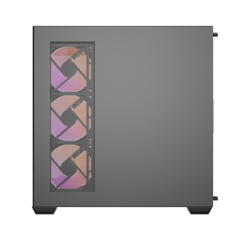 La torre darkFlash DS900W WOOD es una caja ATX de alto rendimiento diseñada para entusiastas que buscan estética, capacidad de expansión y eficiencia en refrigeración. Su panel lateral de cristal templado panorámico de 270° permite una visión completa del interior, mostrando todos los componentes sin obstrucciones, mientras que el listón de madera frontal le aporta un toque distintivo y elegante.