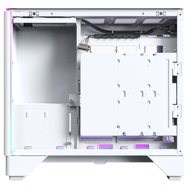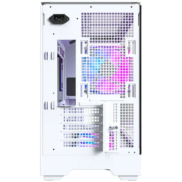 La Montech KING 15 PRO ARGB White es una torre Micro-ATX que combina un formato compacto con un diseño premium y un alto rendimiento térmico, destacando por su elegante panel de cristal curvo que ofrece una vista panorámica del interior y realza la iluminación ARGB del sistema. A pesar de su tamaño reducido, incorpora una estructura de doble cámara que optimiza la organización y el flujo de aire, junto con ventiladores inferiores inclinados que mejoran la refrigeración de la tarjeta gráfica, convirtiéndola en una opción ideal para configuraciones potentes en espacios más ajustados.