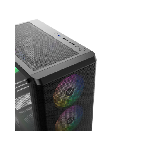 La Torre mATX XYZ AIRONE 60 Mesh Lite Black es una caja compacta diseñada para ofrecer un flujo de aire excepcional y un rendimiento térmico óptimo, ideal tanto para configuraciones gaming como profesionales. Gracias a su panel frontal de malla de alto rendimiento y a los 4 ventiladores ARGB preinstalados, garantiza una refrigeración eficiente incluso bajo cargas exigentes, combinando además un funcionamiento silencioso con una estética moderna y personalizable.
