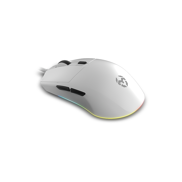 Diseño total white con iluminación RGB Rainbow en teclado, ratón y auriculares.