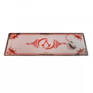 Diseño en colores blanco, negro y rojo, inspirado en la estética Assassin’s Creed.