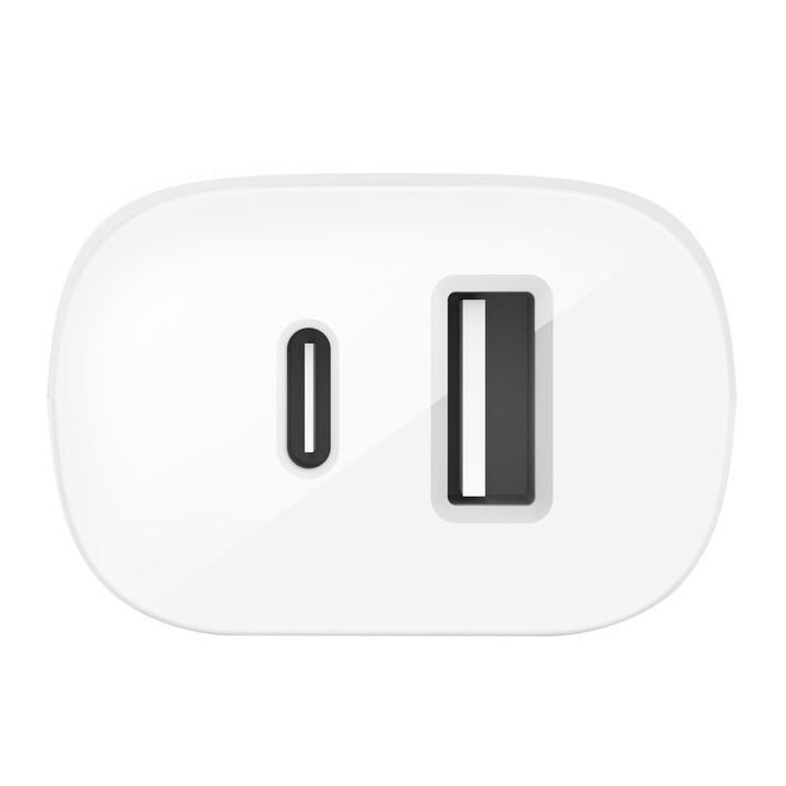 El Belkin WCB008VF04-APL es un cargador de pared compacto y versátil diseñado para ofrecer carga rápida y segura a dispositivos móviles. Gracias a su doble puerto (USB-C y USB-A), permite cargar dos equipos al mismo tiempo con una potencia total de hasta 32W, siendo una solución práctica para quienes buscan eficiencia y compatibilidad universal en un formato portátil.