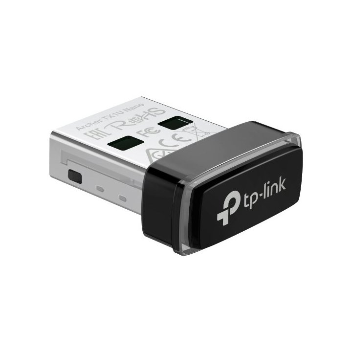 Adaptador USB compacto que permite conexión Wi-Fi 6 de alta eficiencia y velocidad para PC y portátiles.
