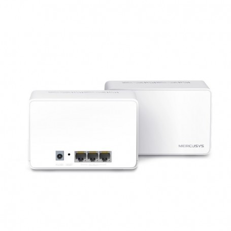 El Mercusys Halo H80X (2-Pack) es un sistema de malla Wi-Fi 6 diseñado para proporcionar cobertura rápida, estable y continua en interiores, ideal para hogares o pequeñas oficinas que requieren conexión confiable en toda el área. Con soporte de doble banda (2,4 GHz / 5 GHz) y velocidades de hasta 3000 Mbit/s, este kit de dos puntos de acceso permite conectar múltiples dispositivos de manera simultánea sin pérdida de rendimiento, incluyendo redes de invitados, QoS para priorización de tráfico y funciones de seguridad avanzadas como SPI Firewall y compatibilidad con WPA3. Su diseño compacto y elegante en color blanco incorpora antenas internas, indicadores LED y un total de 3 puertos LAN para conexión por cable, cubriendo hasta 460 m² de superficie y ofreciendo configuraciones fáciles de DHCP, IP estática o dinámica.