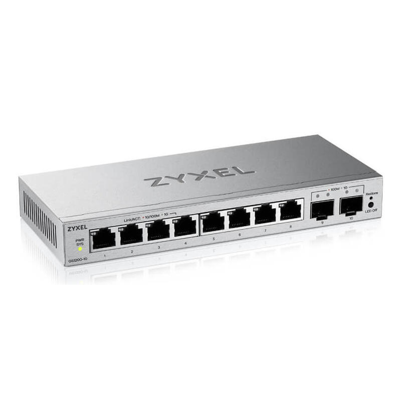 El ZyXEL GS1200-10V3 es un switch gestionado de capa 2 diseñado para redes profesionales que necesitan flexibilidad de conexión, alto rendimiento Gigabit y enlaces de fibra, todo en un formato compacto y silencioso de escritorio. Incorpora 8 puertos Gigabit Ethernet junto con 2 ranuras SFP, permitiendo combinar cobre y fibra para ampliar la red, y ofrece gestión web intuitiva, funciones avanzadas de VLAN, QoS y control de tráfico, siendo una solución ideal para oficinas, pymes y entornos que requieren segmentación y escalabilidad sin PoE.