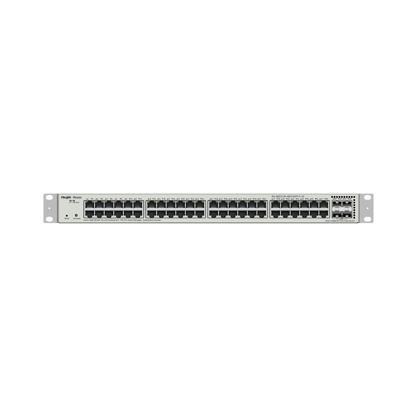 El Ruijie RG-NBS3100-48GT4SFP-P-V2 es un switch gestionable L2 diseñado para redes empresariales que requieren alta densidad de puertos, alimentación PoE+ y administración centralizada en la nube. Con 48 puertos Gigabit RJ45, 4 puertos SFP 1G y un presupuesto PoE de 370 W, ofrece una solución potente y escalable para despliegues de cámaras IP, puntos de acceso WiFi, telefonía IP y entornos de alta demanda. Su capacidad de conmutación de 104 Gbps, su tasa de reenvío de 77.38 Mpps y funciones avanzadas de seguridad garantizan un rendimiento estable y eficiente en infraestructuras corporativas modernas.