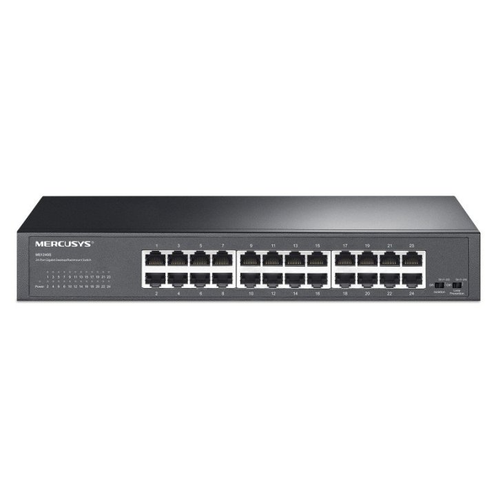 El Mercusys MS124GS es un switch no gestionable de 24 puertos Gigabit diseñado para ofrecer un rendimiento estable, alta capacidad de conmutación y fiabilidad profesional. Su carcasa metálica enrackable y su funcionamiento sin ventilador lo hacen ideal para oficinas, pequeñas empresas o entornos donde se requiere una red eficiente y silenciosa.