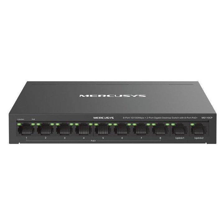 SWITCH POE+ NO GESTIONABLE MERCUSYS MS110CP 10P 8xRJ45 100Mbps PoE+ 2xGbps 65W 250m